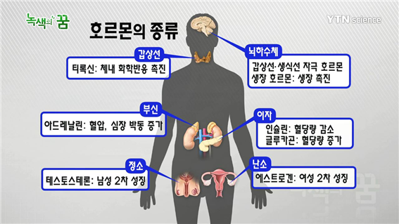 호르몬(Hormone) 인체기관은 신경계에 의한 신경성 조절과 화학물질에 의한 화학적 조절에 의하여 조정되고 수행된다. 화학적 조절은 특정한 내분비선(endocrine gland)의 분비물인 호르몬이 체액으로 분비되면서 조절된다. 호르몬이란 특수한 유기화합물로서 명령전달물질 또는 정보 운반체로서 특정기관과 조직에서 생산된 후 혈액 또는 신경을 거쳐 작용부위에 도달한다. 호르몬은 유기화합물로서 구조적인 특성에 따라서 세 종류로 구별할 수 있다. 1. 페놀(Phenol) 유도체 : 부신수질 호르몬, 갑상선 호르몬2. 스테로이드(Steroid) : 부신피질 호르몬, 성 호르몬3. 단백질 또는 폴리펩타이드 : 인슐린, 하수체전엽 및 후엽 호르몬내분비선호르몬호르몬 구조기능난소(ovary)에스트로젠스테로이드여성에서..