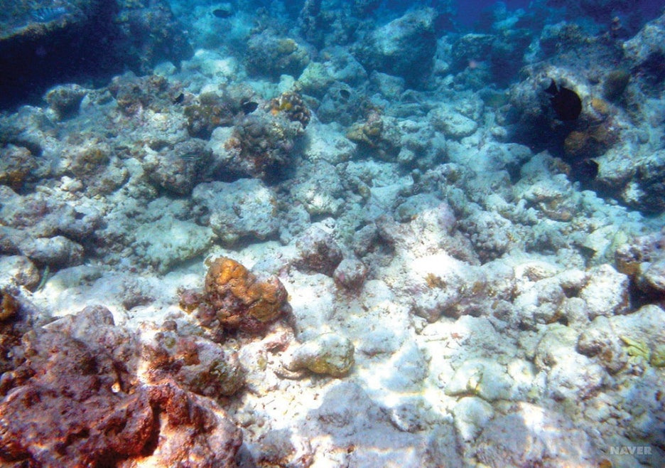 바다의 산호초 군락이 죽어가는 현상, '백화현상'에 대해 알고 계시나요? 백화현상이란 ?백화현상이란 연안해역에서 해조류의 급격한 감소로 인해 해중림이 소실되는 현상입니다. 일반적으로 해조류가 사라진 자리에는 무절석 회조류가 번성하여 암반표면이 백색으로 변하기 때문에 백화현상이라고 부르지만, 꼭 석회조류가 번성하지 않더라도 해중림의 급격한 소실이 관측될 수도 있기 때문에, 최근에는 더 넓은 의미로 갯녹음이라는 표현도 널리 쓰입니다.  해조류가 소실되면 이를 먹이로 삼거나 해조류를 서식처로 삼는 해양생물들이 함께 사라지기 때문에, 끝내는 해양생태계 자체가 무너지고 어획량 감소 등으로 연안주민들의 생활에 악영향을 미치게 됩니다. 이 때문에 백화현상을 바다 사막화로 표현하기도 합니다. 위 두 사진의 차이가 보이..