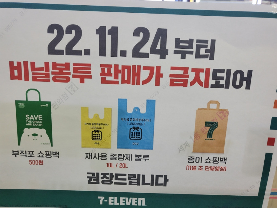 이제 편의점에서 일회용 비닐봉투를 사용할 수 없게 되었다
