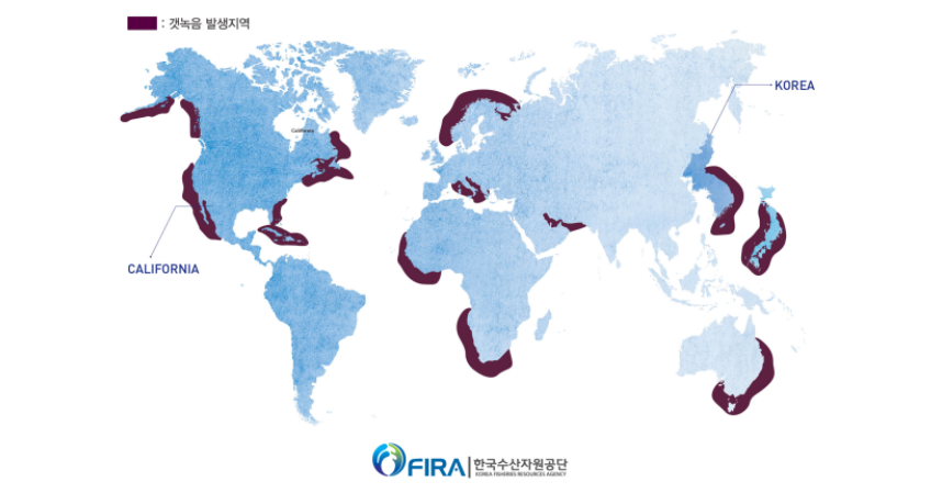 한반도에서는 1980년대에 제주도와 남해안을 중심으로 발생하기 시작했으며, 1990년대에는 동해안에도 나타나기 시작했습니다. 2017년 한국수자원관리 공단의 조사에서는 동해 연안의 62%, 남해 33%, 제주 연근해 35%의 면적에서 백화현상이 나타나고 있는 것으로 밝혀졌습니다.